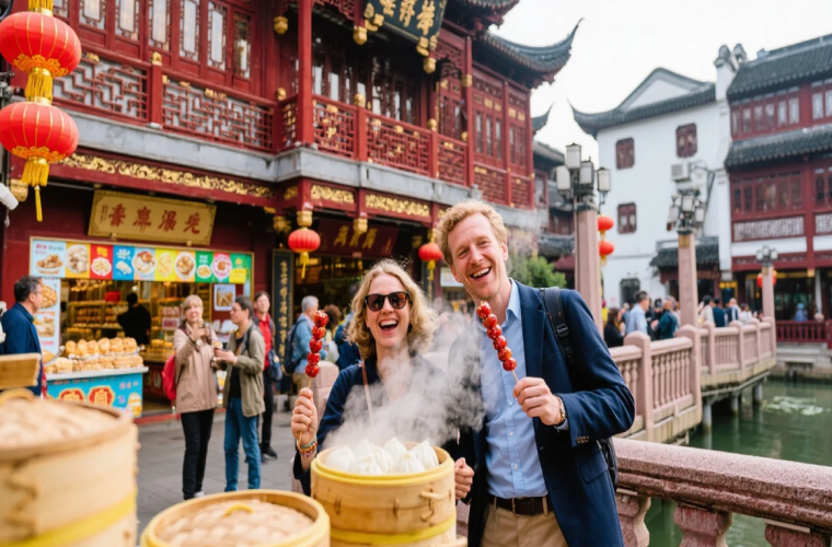 Chenghuangmiao (City God Temple): Next, visit Chenghuangmiao. This area is full of local flavor. Wander through the bustling temple market, where you can sample a variety of Shanghai-style snacks like xiaolongbao (steamed buns). There are also many stalls selling traditional handicrafts, making it a great place to pick up souvenirs.